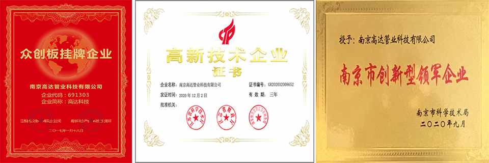 南京高達管業科技有限公司是一家集研發、生產、銷售為一體的專業不銹鋼焊接管制造現代化企業。公司坐落于全國經濟最具活力的長三角地區一南京市高淳區開發區。公司占地面積15000余平方米,注冊資金1000萬元。公司擁有20條自動生產線;打壓機、渦流探傷儀等各類檢測設備;激光切割、光亮退火爐等各類輔助設備。公司可按照國家GB標準、美國ASTM、日本JIS、德國DIN等國內外標準組織生產。原材料管經過加工后廣泛適用于工業流體用管、空調用管、換熱器用管、汽車排氣用管、蜂窩載體用管、不銹鋼飲水用管、食品衛生用管、煤氣用管等領域。服務遍布機械、汽車、空調、給水系統、食品衛生、基礎建設等領域。生產管徑及壁厚分別為(管徑:6-159、壁厚:0.3-5.0)。年生產能力達到10000噸/年。